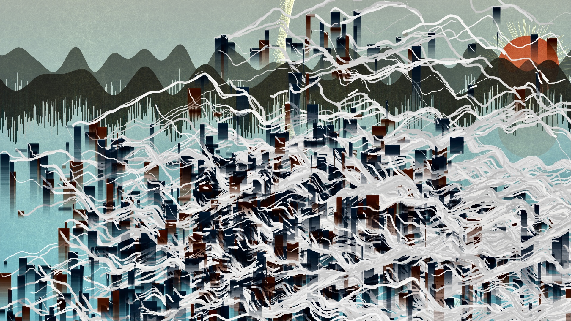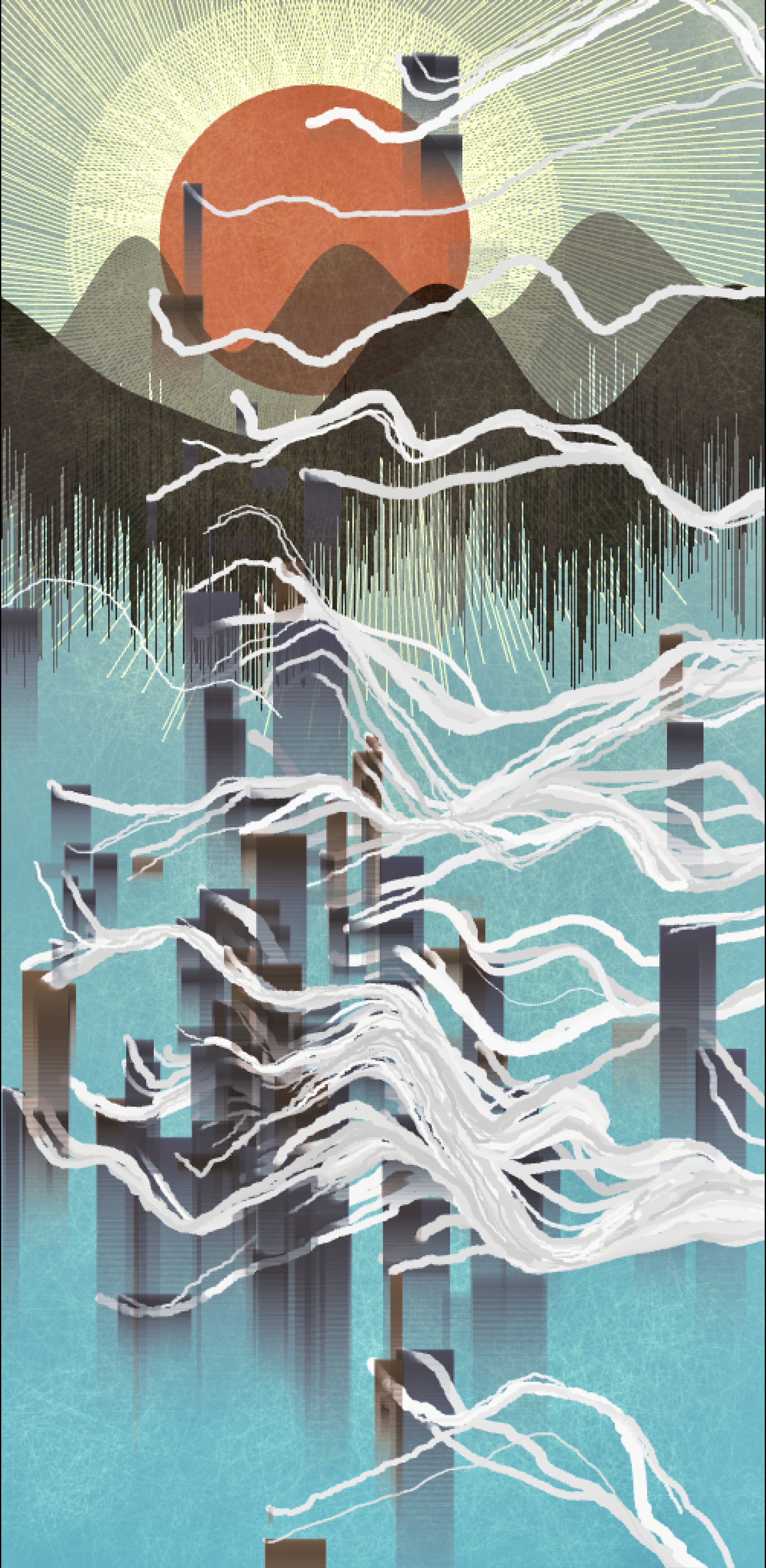 audience moves their bodies, the code creates a swarm of chimneys and smoke that